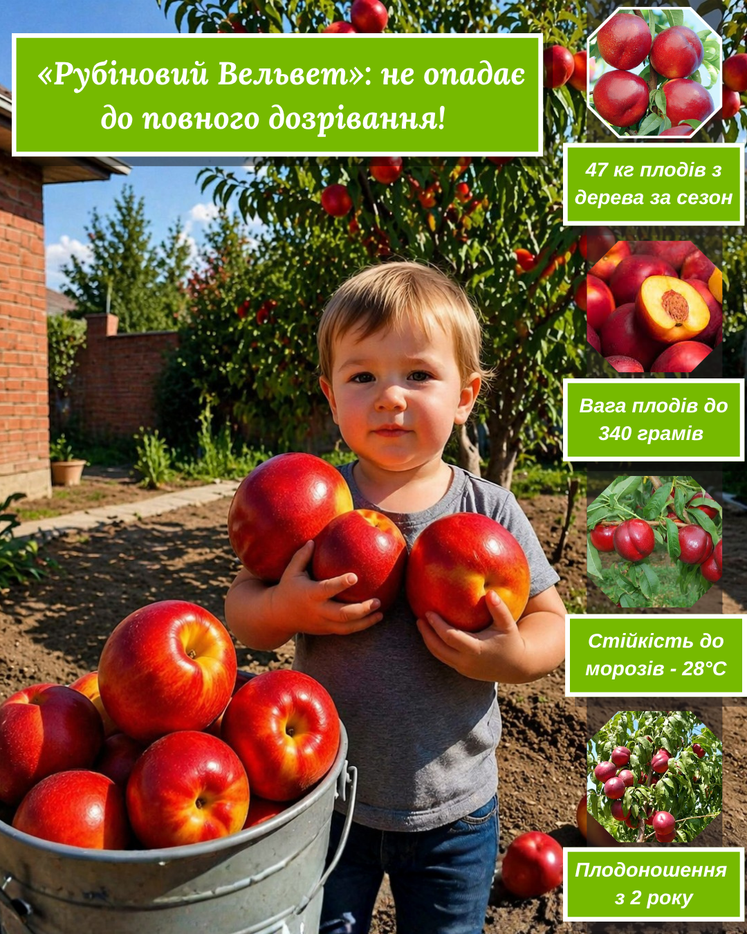 Десертний сорт — великі плоди до 340 грамів і врожай до 47 кг з дерева!